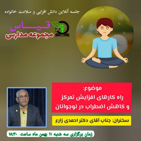 دومین جلسه از سلسله جلسات آموزش خانواده با موضوع "سلامت تغذیه ای خانواده" با سخنرانی جناب آقای دکتر احمدی زارع، محقق و مدرس تغذیه و ارتباط آن با سلامت و مولف بیش از 25 کتاب تخصصی در زمینه تغذیه، در روز سه شنبه مورخ 1401/11/11 به صورت آنلاین برگزار شد.