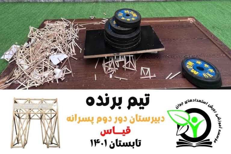 در نهایت، سازه ها توسط داوران تست شده و گروه دانش آموزان برنده که سازه آنها مقاوت بیشتری در برابر بار وارده داشته، مشخص شد. سازه برنده به جرم ۳۰ تا ۳۵ گرم، بار ۵۰ کیلوگرمی را تحمل کرد.